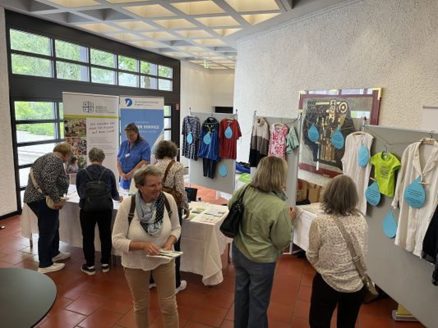 Als Vertreterinnen der Werke stellten Birgit Ullmann (VSB) und Elfriede Lochbihler (Landfrauenvereinigung) die Aktion „Leinen hoch!“ vor. Mit dieser Aktionsidee, die sich an die Zweigvereine richtet, soll auf den verdeckten Verbrauch von Wasser durch die Produktion und Pflege von Kleidung sensibilisiert werden.