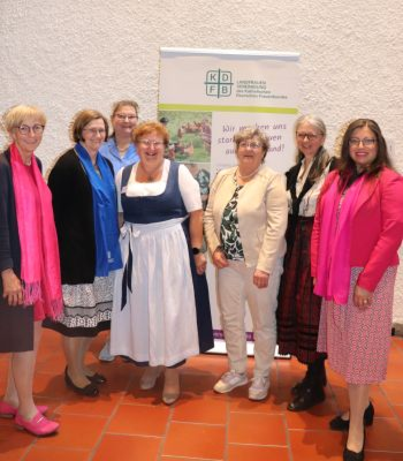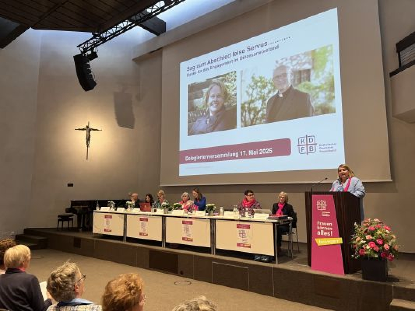 In der Tagesordnung weiter ging es weiter mit einem ausführlichen Rückblick zu den Tätigkeiten des Diözesanverbandes. Annette Fischer, Vorsitzende des Bildungswerks, berichtete von der erfolgreichen Arbeit des Bildungswerks, das mit rund 10.000 Teilnehmerinnen und Teilnehmern in etwa 400 Veranstaltungen pro Jahr eine bedeutende Rolle im Bildungsangebot der Katholischen Erwachsenenbildung im Bistum Augsburg spielt. Silvia Lutz, stellvertretende Diözesanvorsitzende aus Binswangen, stellte stolz eines der Highlights im Bildungsprogramm vor: den alle zwei Jahre stattfindenden Frauentag. Ulrike Stowasser, Diözesanvorsitzende, informierte die Anwesenden über die Bemühungen, die wachsende Zahl an Einzelmitgliedern in den Verband zu integrieren. Eine Arbeitsgruppe hat Ideen entwickelt und im Jahr 2024 ein erstes Treffen der Einzelmitglieder organisiert. Dabei wurden auch die satzungsgemäß vorgesehenen Delegierten gewählt. Claudia Keisinger, die dieses Amt übernommen hat, stellte sich persönlich vor und kündigte ein neues Angebot an: Neben den jährlichen Präsenztreffen gibt es künftig auch eine Online-Variante, um die Vernetzung der Einzelmitglieder zu fördern. Im Anschluss erfolgte der Finanzbericht durch die Schatzmeisterin Annette Fischer und die Vorstellung der Bilanzen für 2023 und 2024. Nach mehreren Rückfragen wurde auf Antrag der Kassenprüferinnen Karin Steck und Elisabeth Rotter die Vorstandschaft einstimmig entlastet.