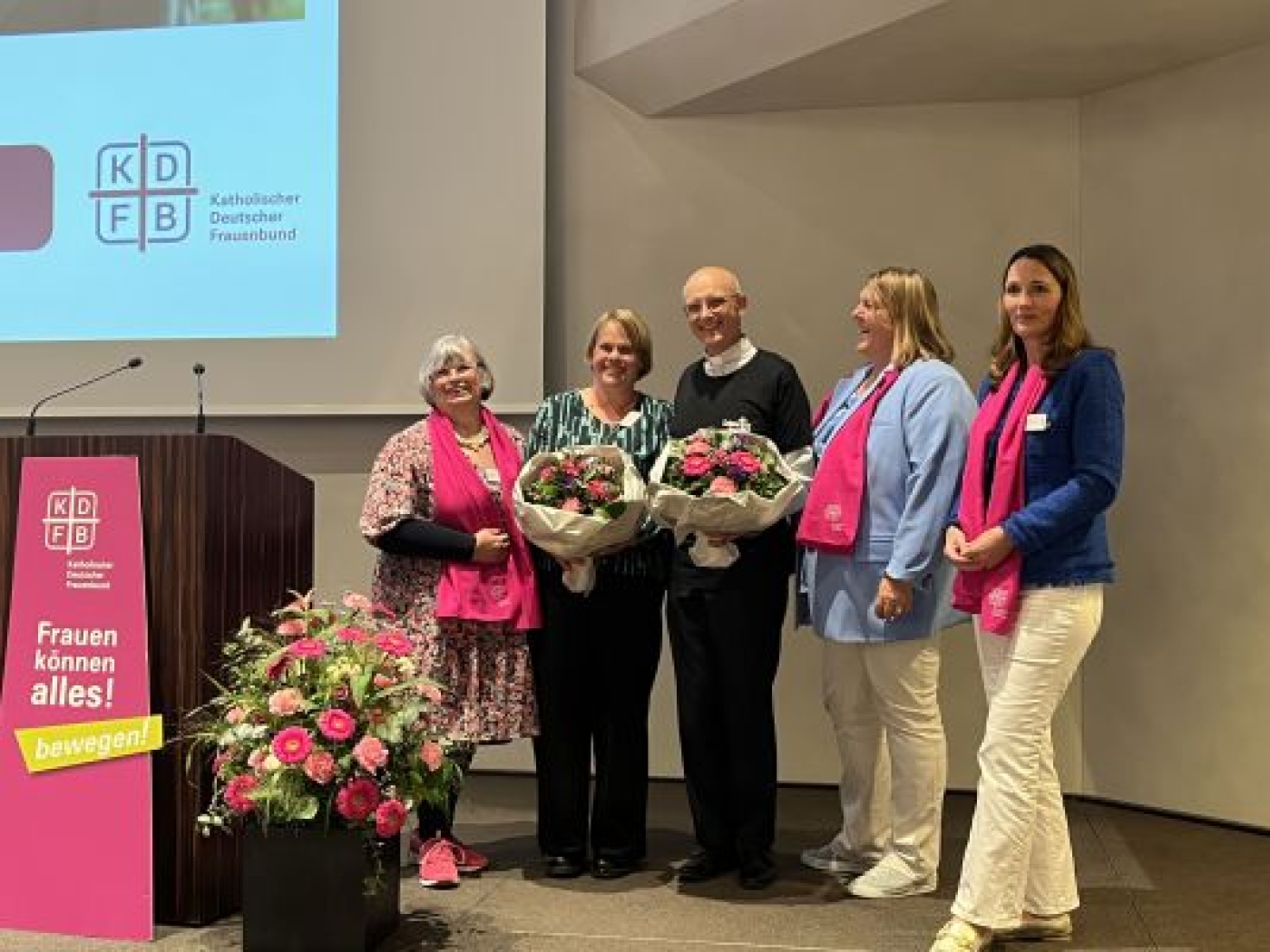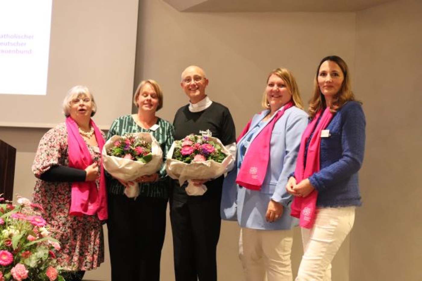 Leider musste auch Abschied genommen werden. Ulrike Stowasser formulierte Dankesworte für Constanze Wackenhut aus Altusried, die zeigten, wie wichtig das Engagement der stellvertretenden Diözesanvorsitzenden über die letzten beiden Jahre gewesen war: Von der Verantwortung für die Öffentlichkeitsarbeit des Diözesanverbandes über die Präsenz in den Bezirken war es vor allem ihr kritisches und innovatives Denken, das für viele Impulse gesorgt hatte. Der geistliche Begleiter, Prof. Dr. Thomas Schwartz, hat seit vier Jahren die Leitung des Hilfswerk Renovabis inne und kann sein Amt für den KDFB leider nicht mehr ausfüllen. Die Damen dankten für sein Wirken und vor allem für seine Offenheit, Unterstützung und Wertschätzung, wenn es um das Thema Frauen in der Kirche und deren Sichtbarkeit geht.