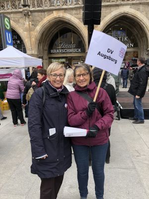 Aus der Diözese Augsburg waren Frauen aus Kempten, Nördlingen, Günzburg, Lindenberg, Holzheim und vielen weiteren Orten nach München gekommen. Sie alle hatten bereits im Vorfeld den Flashmob-Tanz eingeübt und nun wurde dieser mit viel Spaß und Begeisterung auf dem Marienplatz aufgeführt. Ilse Aigner, Emilia Müller und weitere bewegungsfreudige Frauen zeigten sich begeistert auf der Bühne. So sorgten die KDFB-Frauen für bundesweite Aufmerksamkeit und stellten unter Beweis, dass der KDFB ein moderner und bewegter Verband ist.