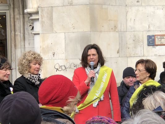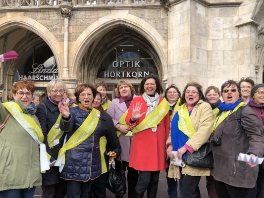 Prominente Schirmherrinnen der Veranstaltung waren Ilse Aigner, Landtagspräsidentin und Sonja Reiter, First Lady der Stadt München. BR-Moderatorin Susanne Rohrer führte spritzig durch das Programm. Bei der Begrüßung der Frauen aus ganz Bayern jubelte der Marienplatz: Frauen aus den Diözesen Augsburg, Eichstätt, München-Freising und Regensburg hatten sich auf den Weg gemacht, alle mit großer Vorfreude und Spannung im Gepäck.