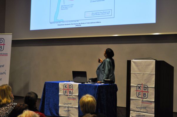 Trotz stagnierender Fortschritte im Nahostkonflikt seit der UN-Resolution 1967 und zunehmendem Druck auf die palästinensische Bevölkerung durch israelische Gesetze, setzt sich Sumaya Farhat-Naser seit vielen Jahren unermüdlich für eine friedliche Lösung zwischen der israelitischen und der palästinensischen Bevölkerung ein. Wenn Sie hautnah von den alltäglichen Repressalien, denen die Palästinenser ausgesetzt sind, erzählt, spürt man Hoffnungslosigkeit und Resignation. Mauern und Zäune wurden in den letzten Jahren von der israelitischen Regierung hochgezogen, um die palästinensischen Gebiete systematisch voneinander zu isolieren, fast 60 Wasserquellen und viele Ländereien beschlagnahmt. Mehr als 500 Checkpoints behindern die Palästinenser in ihrem alltäglichen Lebensrhythmus, so dass ein Arbeitsweg von 10 Minuten zu einer stundenlangen Angelegenheit wird. Ziel ist, den Palästinensern das Leben so schwer zu machen, dass sie freiwillig ihr Land verlassen, was bereits viele getan haben. Man spricht offiziell von „humaner Deportation“, so Farhat-Naser.
