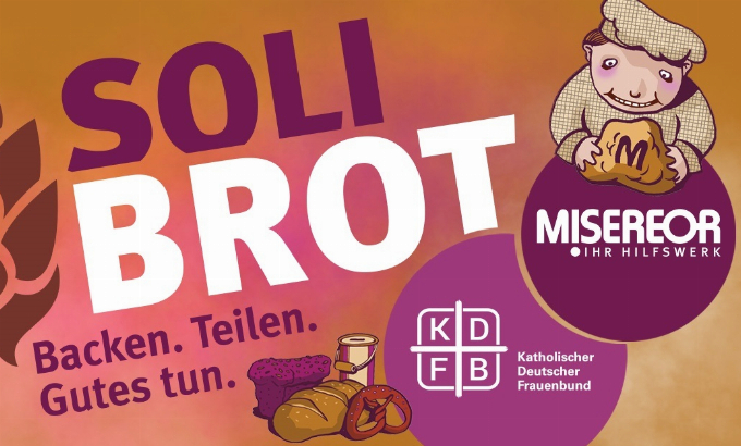 In der Zeit von Aschermittwoch bis Karsamstag bieten Bäcker sogenannte „Solibrote“ zum Kauf an. Das Besondere daran: Dieses Brot wird mit einem Benefiz-Anteil von 50 Cent verkauft. Der Spendenanteil geht zu 100% von der Bäckerei über den KDFB an Misereor und kommt verschiedenen Projekten in Afrika, Asien und Lateinamerika zugute.
